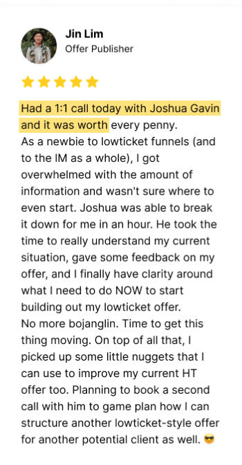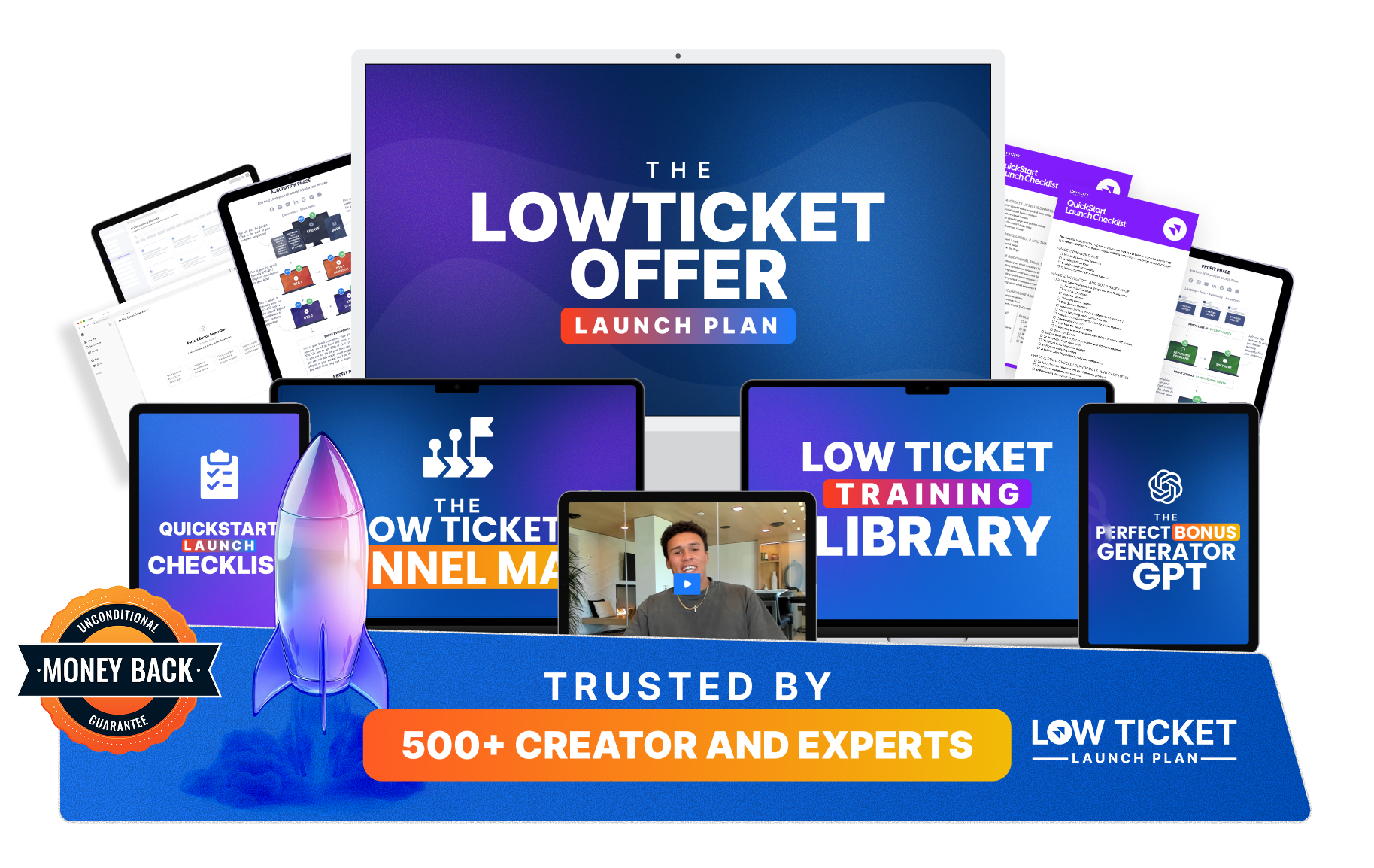 The Lowticket Launch Plan is a done-for-you solution where I'll map out your entire low-ticket offer front to back including...