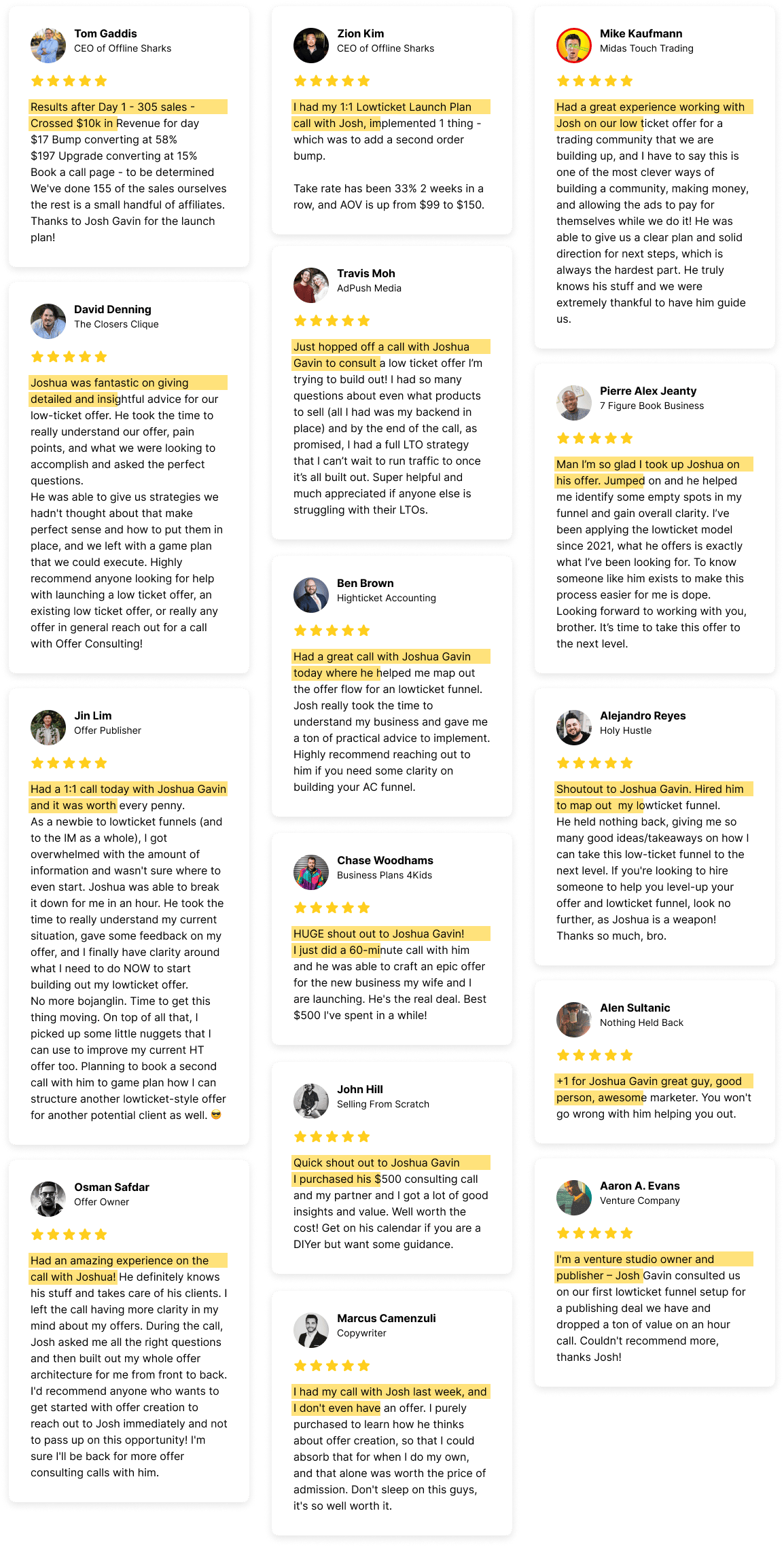 I've spent thousands of hours architecting and building low-ticket offers for info products since 2018 which has given me the ability to give you a winning offer for your market almost instantly after completing your purchase!