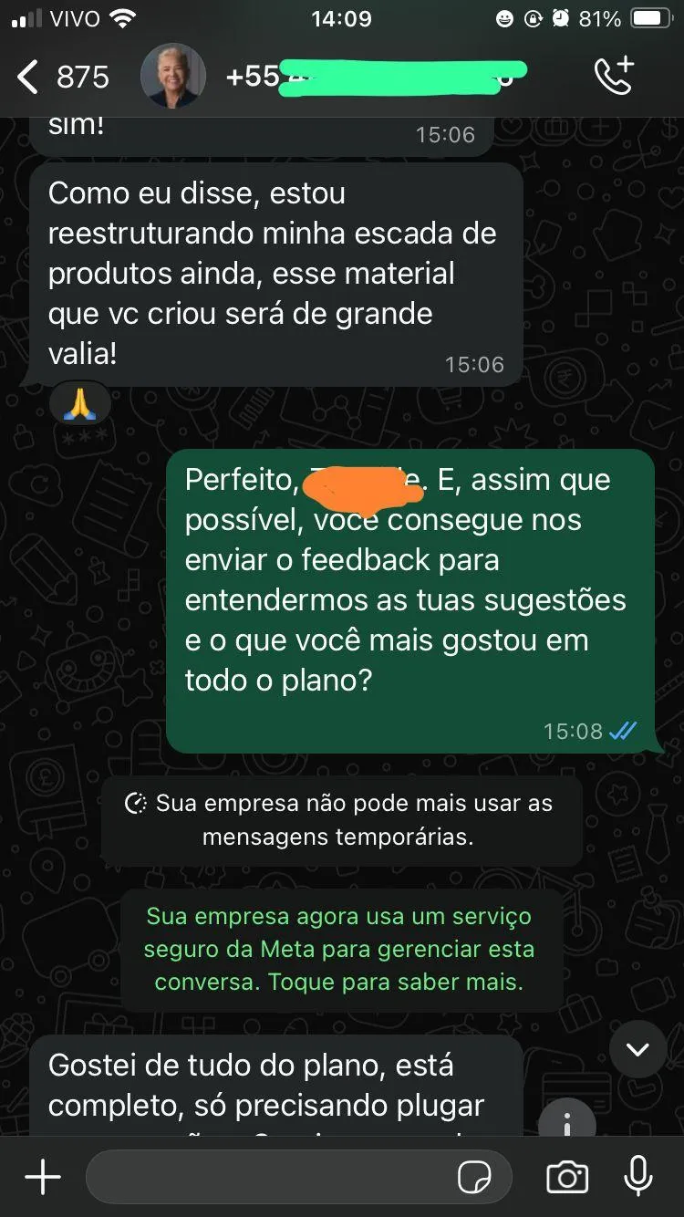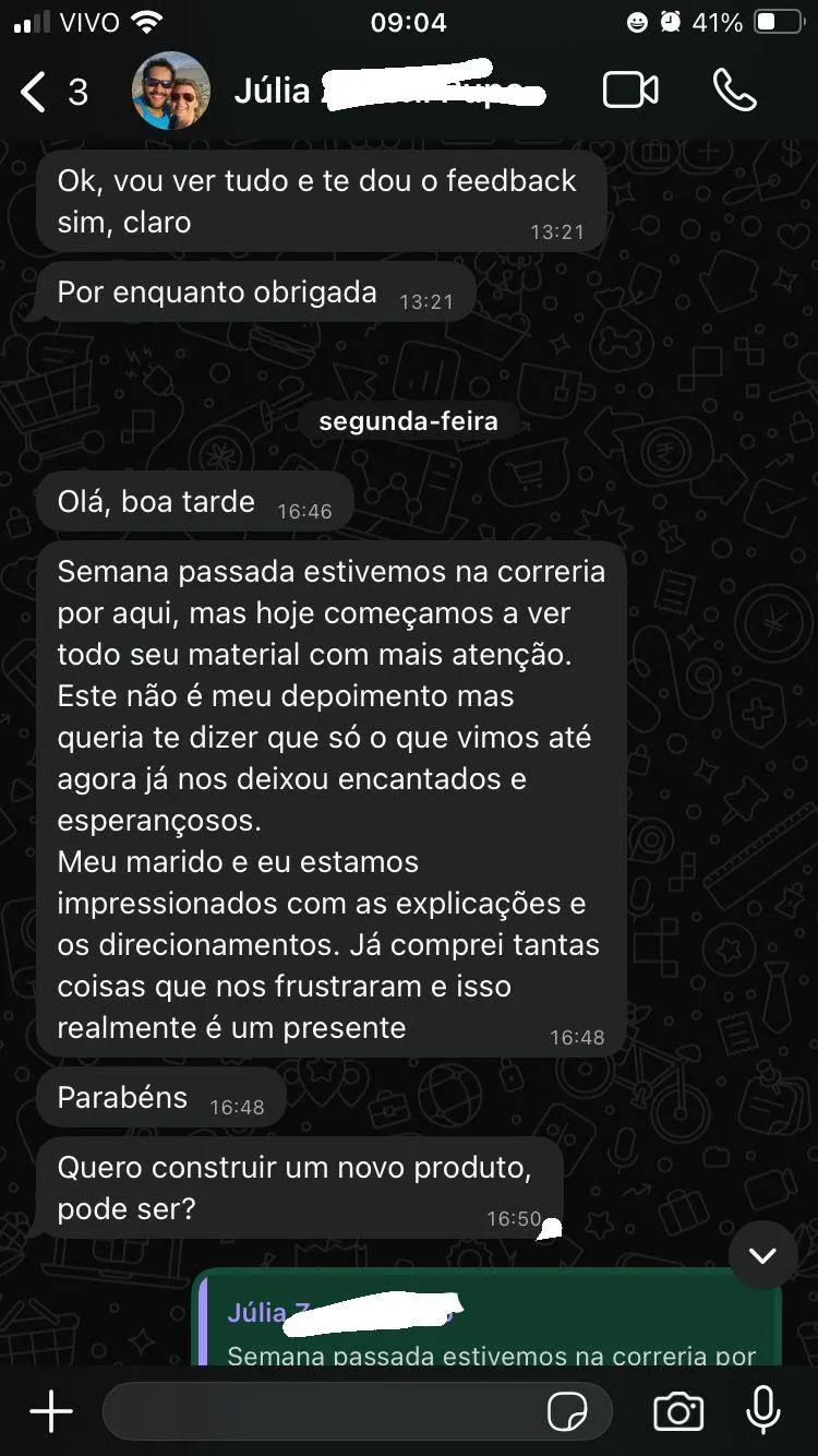 Por último, mas não menos importante: te acompanhamos individualmente no WhatsApp por 30 dias (para você fazer perguntas, receber respostas de dúvidas e ter orientação personalizada).